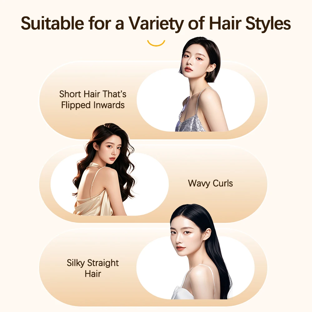 3. Switch effortlessly between sleek straight hair, voluminous air bangs, or beautiful waves with just one button, ideal for both everyday wear and special occasions to express your personal style.