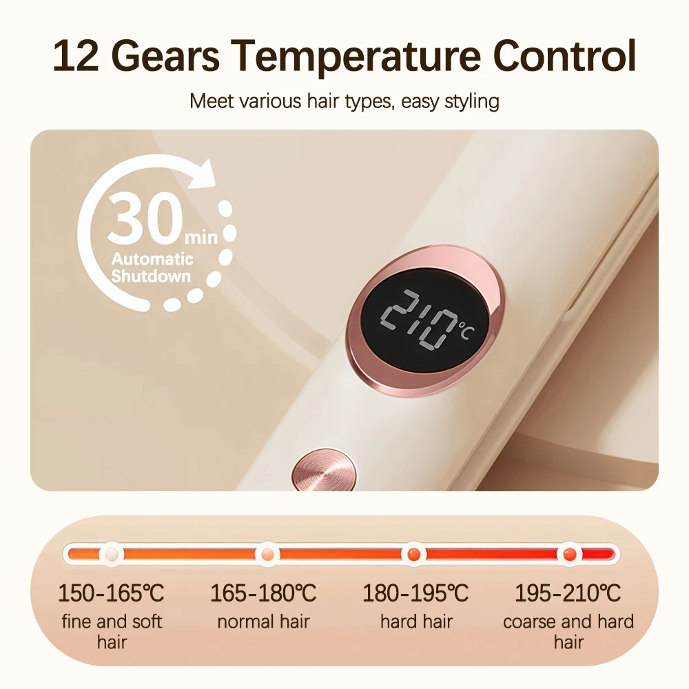 1. With a clear HD temperature display and 12 adjustable heat levels (150°C to 210°C), this flat iron hair straightener is perfect for all hair types, allowing you to easily achieve your ideal look.