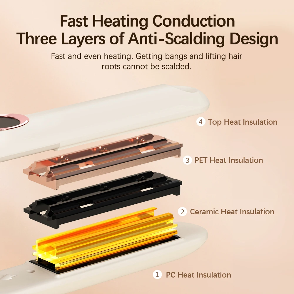 2. Designed with independent power and temperature buttons, this hair straightener curler offers one-touch activation and quick temperature adjustments, making your styling process smooth and efficient.