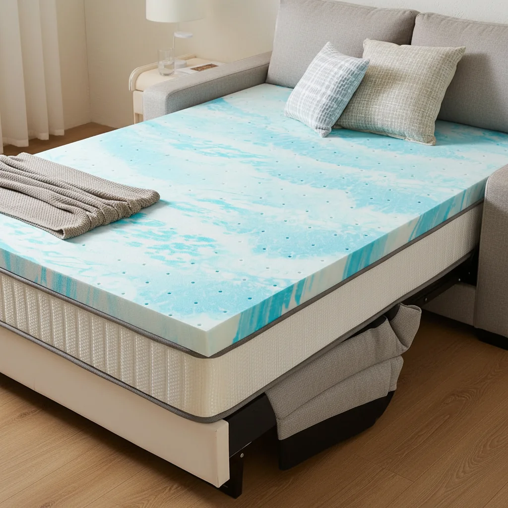 3-Inch Cooling Gel Memory Foam Mattress Topper â Sleep Better Anywhere! Upgrade your sleeping experience with our 3-inch Twin Memory Foam Mattress Topper, designed to bring hotel-level comfort to your RV, camper, guest bed, or sleeper sofa. Whether youâre on the road or at home, this topper provides the perfect combination of support, cooling, and breathability. Key Features: Premium Memory Foam Comfort: Adapts to your bodyâs natural curves, relieving pressure points and ensuring optimal spine alignment for a restful nightâs sleep. Cooling Gel Infusion: Infused with cooling gel beads that help regulate temperature and prevent overheating â perfect for warm nights or small spaces. Breathable & Ventilated Design: Open-cell foam structure allows continuous airflow, keeping your sleep surface fresh and comfortable. CertiPUR-US Certified: Made with high-quality, non-toxic materials â no harmful chemicals or odors. Safe for you and your family. Multi-Purpose Use: Ideal for RVs, campers, guest rooms, or sleeper sofas â instantly upgrade any mattress or sleeping pad. Easy to Set Up: Simply unroll and allow 24â48 hours for full expansion before use. Perfect For: Road trips and camper vans Small apartments and dorm rooms Sofa beds and guest rooms Anyone seeking affordable luxury sleep comfort Sleep cooler, deeper, and more comfortably â anytime, anywhere!